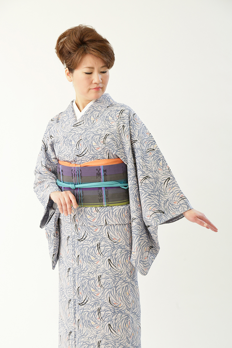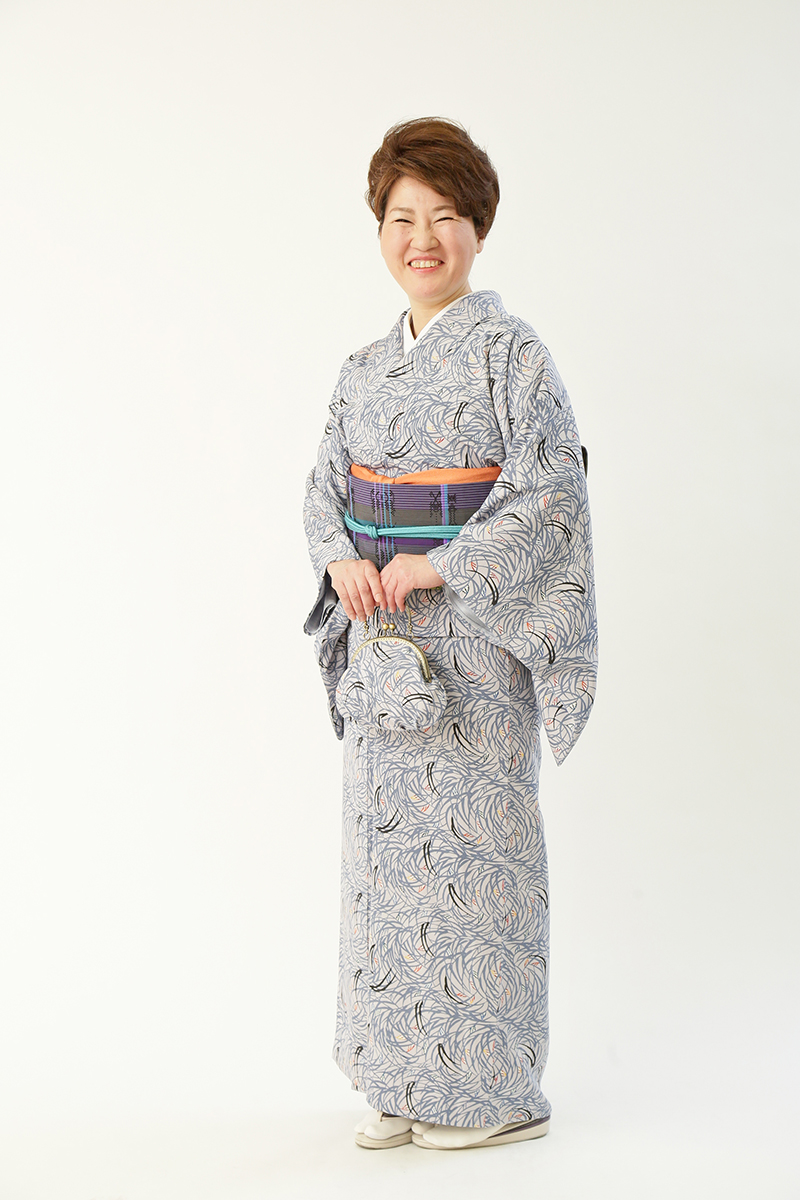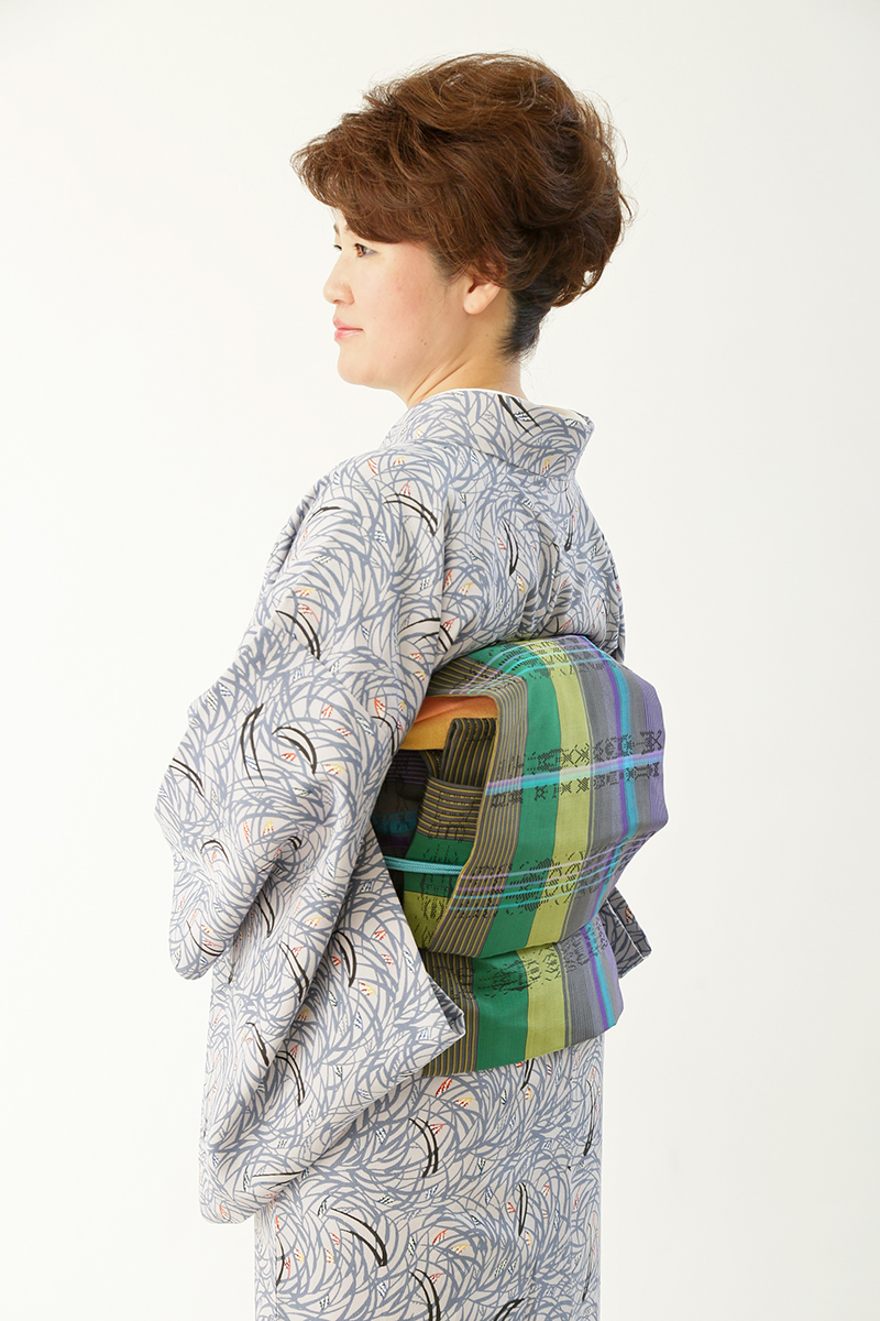 紅型の素敵な柄が気に入っています。花織の帯との相性もばっちりでした。