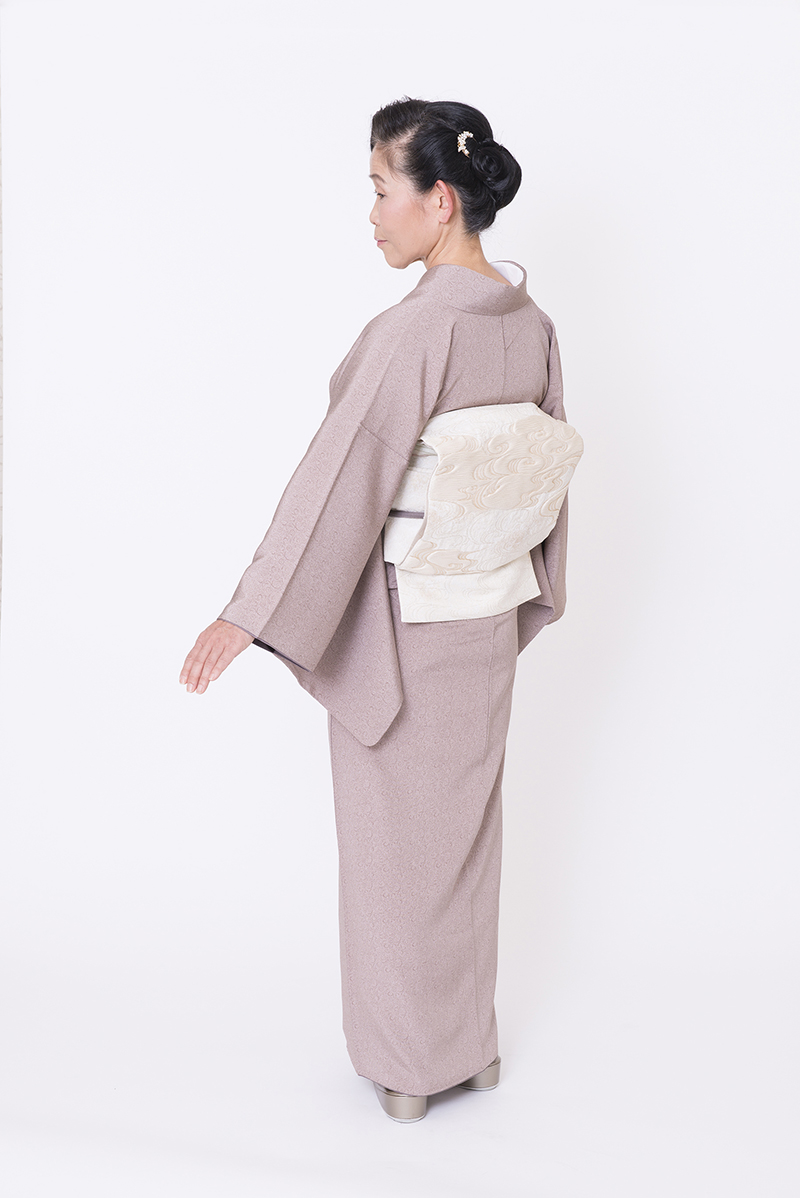 着物の江戸小紋がシックなので、帯(加納幸)で華やかさを加えました。