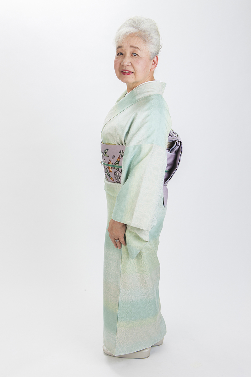 着物はやさしい色とやわらかい手触り、軽さです。帯は紅型で紫という私の好きな色でした。締めやすいです。